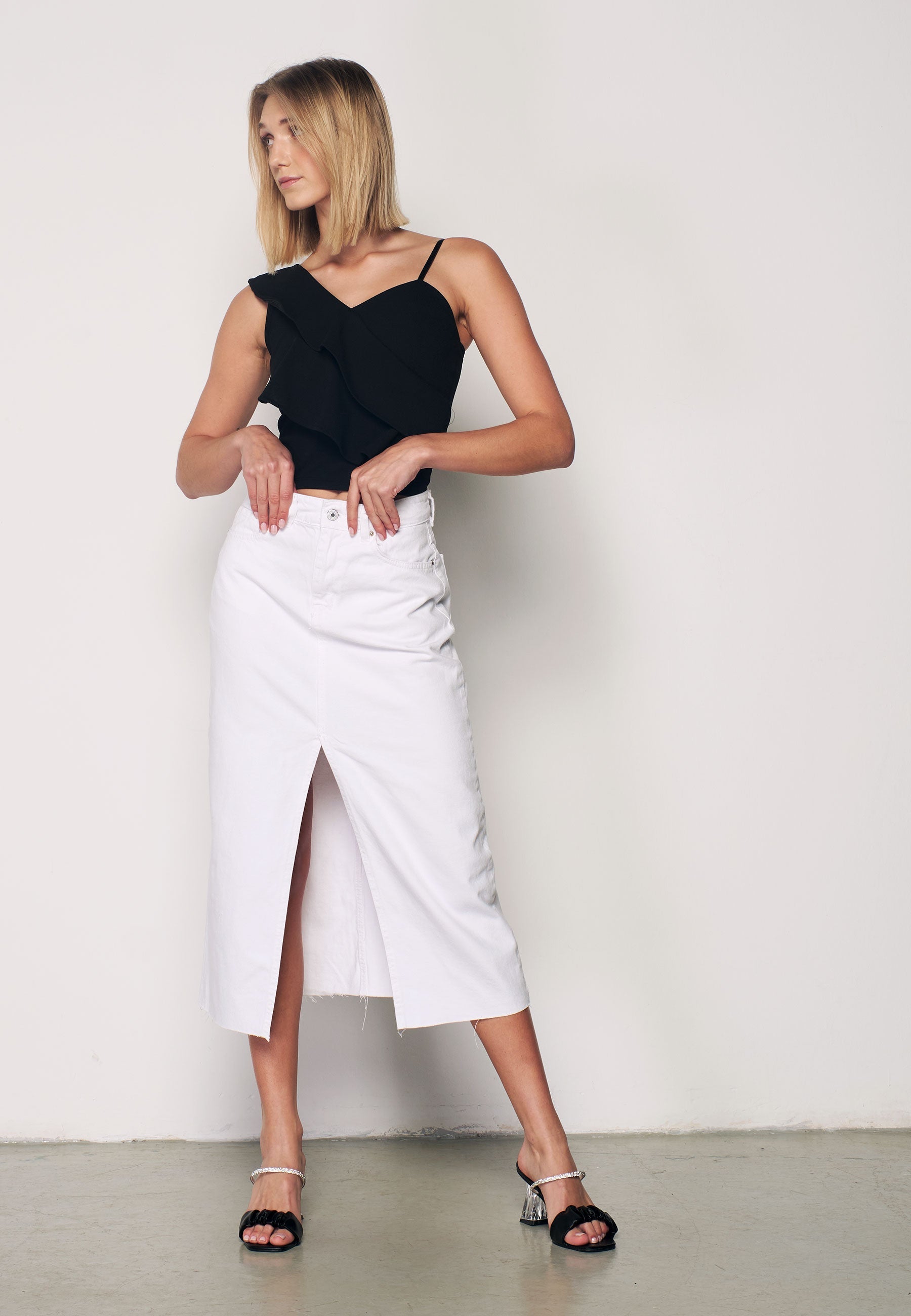 Women's Laser Cut Denim Skirt with Slits ------------------------------------------------------------------- Introducing our Women's Laser Cut Denim Skirt with Slits - the epitome of edgy and chic fashion. Embrace the cutting-edge laser cut design, meticulously crafted to make a bold style statement. This denim skirt offers a perfect blend of comfort and trendiness, with slits adding a touch of allure. Crafted with premium denim and exceptional craftsmanship, this skirt ensures durability and long-lasting wear. Elevate your wardrobe with this unique and stylish skirt that celebrates your individuality and sets you apart as a fashion icon. ------------------------------------------------------------------- * Cutting-Edge Design: The laser cut design adds a unique and edgy touch, making this denim skirt a standout piece in your wardrobe. * Versatile Wardrobe Staple: Perfect for both casual and dressy occasions, offering endless styling possibilities. * Confidence and Allure: Embrace confidence and allure with the slits that add a touch of sophistication to your style. * Premium Denim: Crafted with high-quality denim, this skirt offers superior comfort and durability. * Unleash Your Fashion Persona: Make a bold style statement and express your individuality with this trendy denim skirt. ------------------------------------------------------------------- Quality and Use: * Premium Materials: Our Women's Laser Cut Denim Skirt with Slits is made from high-quality denim, ensuring comfort and style. * Expert Craftsmanship: Meticulously crafted with attention to detail, ensuring durability and longevity. * Flattering Fit: The skirt's design offers a flattering silhouette, enhancing your curves with grace. * Versatile Styling: Perfect for various occasions, from casual outings to evening events, making it a must-have addition to your wardrobe. * Comfortable and Trendy: Embrace comfort and trendiness with this stylish and well-crafted denim skirt. ------------------------------------------------------------------- Design Highlights: * Laser Cut Details: The cutting-edge laser cut design adds an edgy and sophisticated touch to the denim skirt. * Slits for Allure: The slits on the skirt add a touch of allure and elevate the style for a chic and modern look. * Denim Chic: The premium denim material exudes a trendy and fashionable vibe, perfect for contemporary fashion lovers. * Effortless Statement: Stand out from the crowd effortlessly with this unique and stylish denim skirt. * Fashion Icon: Embrace your role as a fashion icon with this edgy and chic laser cut denim skirt. ------------------------------------------------------------------- Care: Hand wash with cold water and gentle detergent. Machine wash on delicate cycle with cold water and a mesh bag. Air dry flat to preserve shape and fabric. For delicate skirts, consider dry cleaning. Always follow care label instructions.