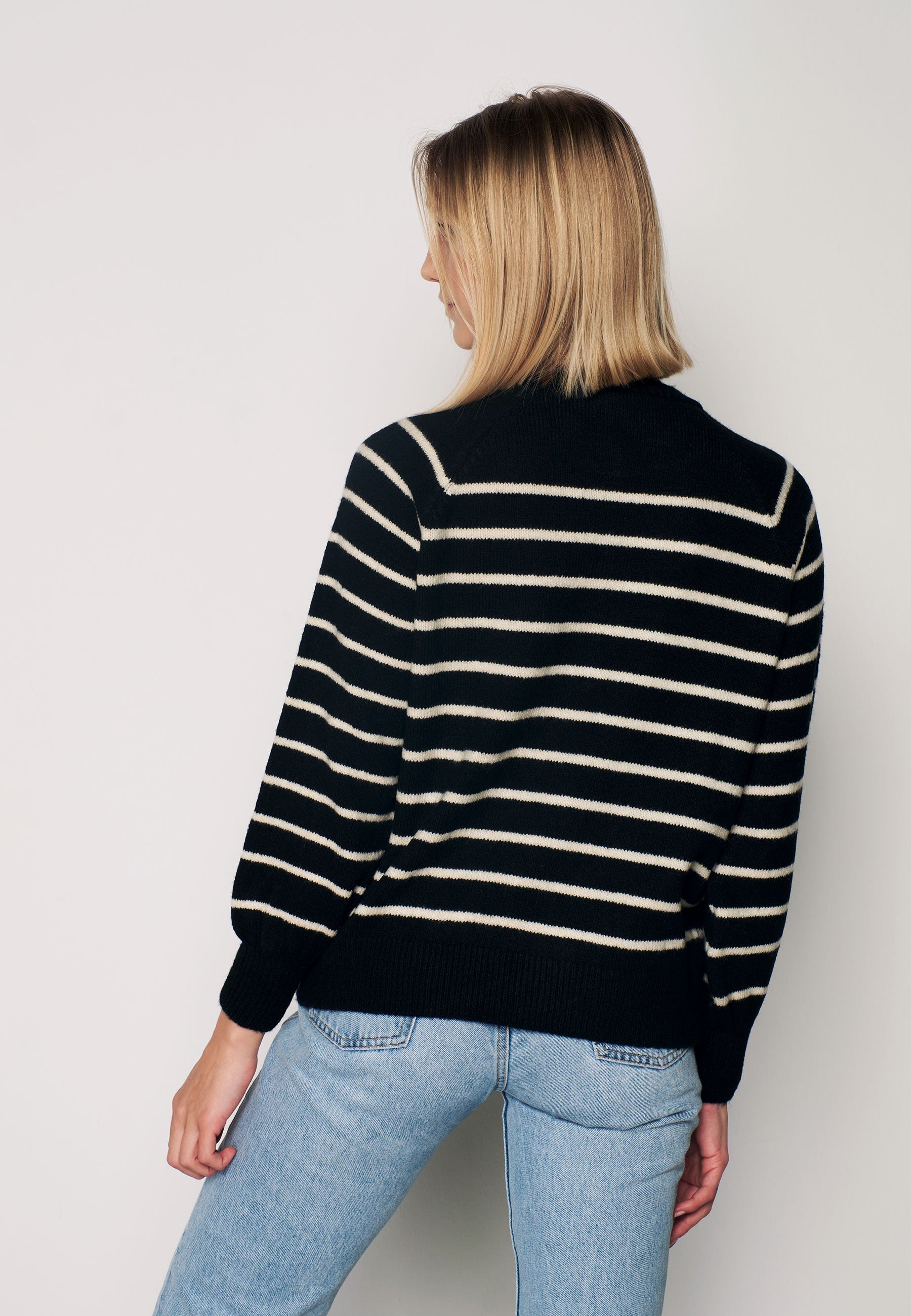 Women's Turtleneck Striped Knit Sweater with Buttonhole Collar